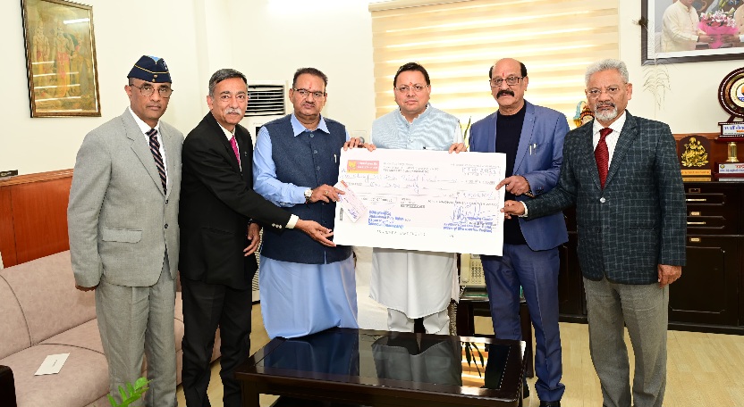 देहरादून :- उत्तराखंड के सैनिक कल्याण मंत्री गणेश जोशी ने आज सचिवालय में मुख्यमंत्री पुष्कर सिंह धामी को उत्तराखंड पूर्व सैनिक कल्याण निगम लिमिटेड (उपनल) से एक करोड़ रुपये की धनराशि का चैक मुख्यमंत्री राहत कोष के लिए प्रदान किया। गौरतलब है कि बीते शनिवार को उपनल के 21वें स्थापना दिवस के अवसर पर सैनिक […]