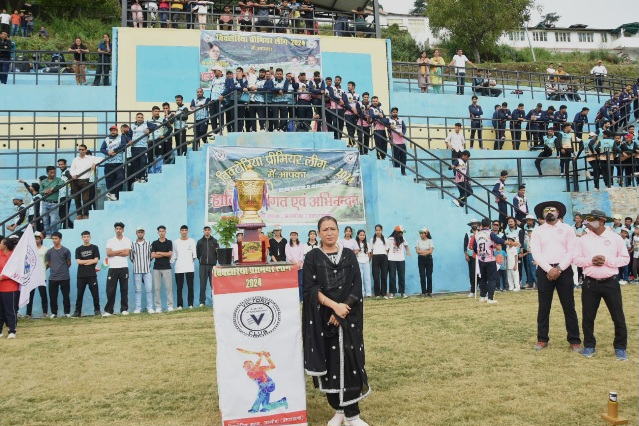 देहरादून/अल्मोड़ा:- खेल एवं युवा कल्याण मंत्री रेखा आर्या ने अल्मोड़ा के हेमवंती नंदन बहुगुणा स्पोर्ट्स स्टेडियम पहुंची जंहा विक्टोरिया क्रिकेट क्लब के सदस्यों ने कैबिनेट मंत्री का पुष्पगुछ भेंट कर स्वागत किया, खेल मंत्री रेखा आर्य ने हेमवंती नंदन बहुगुणा की तस्वीर पर पुष्प अर्पित कर बहुगुणा जी को नमन किया । इस अवसर पर मंत्री आर्या ने विक्टोरिया प्रीमियर लीग की ट्रॉफी का अनावरण कर क्रिकेट टूर्नामेंट का उद्घाटन किया ।