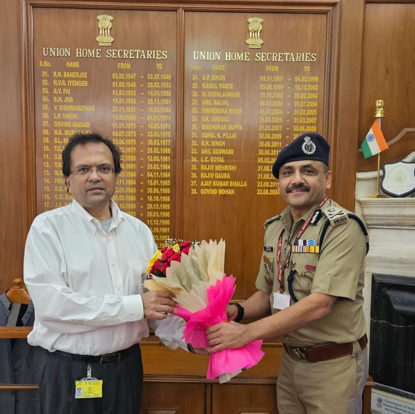 नई दिल्ली:- उत्तराखंड के पुलिस महानिदेशक अभिनव कुमार ने नई दिल्ली में केंद्रीय गृह सचिव गोविंद मोहन से शिष्टाचार मुलाकात की। इस मुलाकात में राज्य की कानून व्यवस्था, सुरक्षा परिदृश्य, महिला सुरक्षा, और पुलिस सुधारों से संबंधित महत्वपूर्ण मुद्दों पर गहन चर्चा हुई।