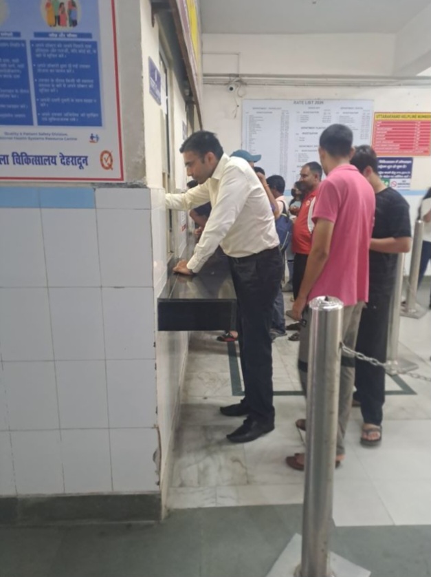 देहरादून:- जिलाधिकारी सविन बंसल निजी वाहन से जिला चिकित्सालय कोरोनेशन पंहुचकर आम नागरिक की तरह लाईन पर लगते हुए अपना ओपीडी पर्चा बनाया तथा ओपीडी व्यवस्था को परखा। इसी तरह निरीक्षण करते हुए उन्होंने चिकित्सालय में आमजनमानस के लिए उपलब्ध सुविधाओं के बारे में जानकारी जुटाई। जैसे ही चिकित्सालय परिवार को जिलाधिकारी के अस्पताल में होने की भनक लगी तो आनन-फानन में सभी सम्बन्धित अधिकारी 10ः00 बजे के करीब चिकित्सालय में पंहुचे। सफाई व्यवस्था को लेकर नाराजगी जाहिर करते हुए उन्होंने मानक के अनुरूप चिकित्सालय में सफाई व्यवस्था बनाये रखने तथा स्वच्छ पेयजल की उपलब्धता सुनिश्चित करने के निर्देश दिए। अस्पताल में आने वाली मरीजों एवं तीमारदरों को किसी भी प्रकार की अुसविधा न हो इस बात को गंभीरता से लेना सुनिश्चित करें