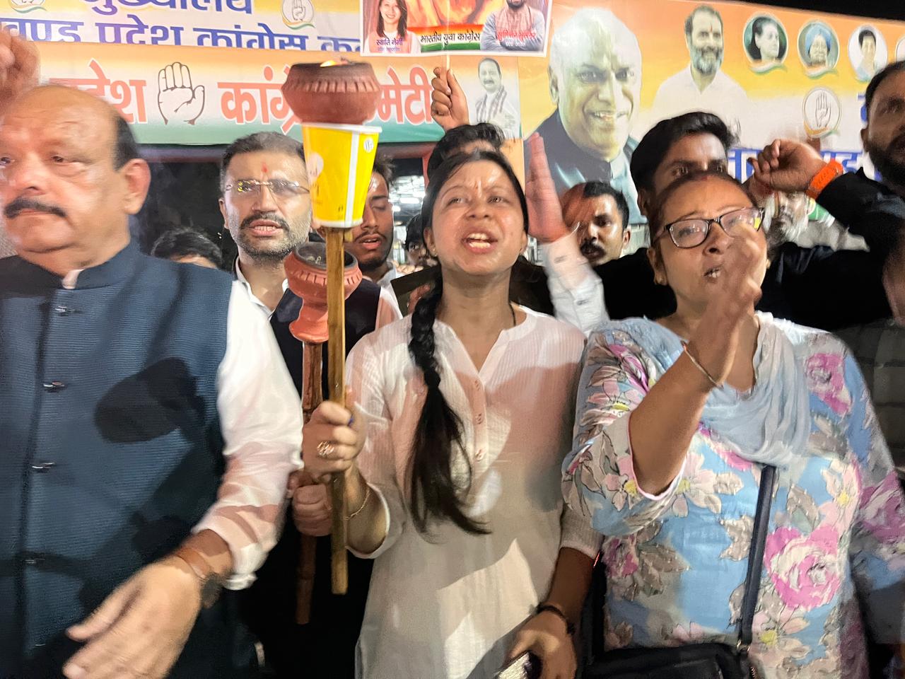 पूर्व निर्धारित कार्यक्रम के तहत सैकडों युवा कांग्रेस कार्यकर्ता सायं कांग्रेस कार्यालय एकत्र हुए जहां से उन्होंने युवा कांग्रेस की प्रदेश महासचिव स्वाति नेगी के नेतृत्व में नारेबाजी के करते हुए गांधी पार्क होते हुए घंटाघर पहुंचे।