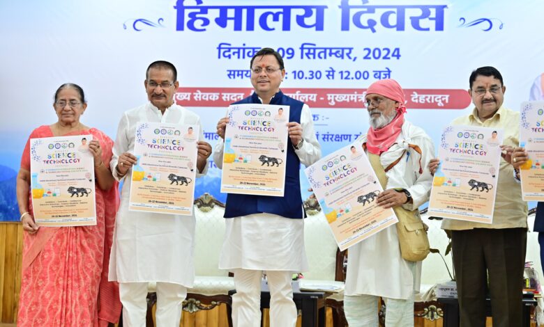 देहरादून:- सोमवार को मुख्यमंत्री पुष्कर सिंह धामी ने हिमालय दिवस के अवसर पर मुख्य सेवक सदन में आयोजित कार्यक्रम में प्रतिभाग किया। मुख्यमंत्री ने कहा कि हिमालय के सरोकारों से जुड़े विषयों के लिए महानिदेशक यूकॉस्ट दुर्गेश पंत के संयोजन में एक कमेटी बनाई जायेगी। इस अवसर पर उन्होंने यूकॉस्ट द्वारा आयोजित की जाने वाली राज्य स्तरीय पांचवें देहरादून, अन्तरराष्ट्रीय साइंस एण्ड टेक्नोलॉजी फैस्टिवल के पोस्टर का भी विमोचन किया। यह महोत्सव 06 जनपदों देहरादून, चमोली, उत्तरकाशी, टिहरी, बागेश्वर और पिथौरागढ़ स्थित इंजिनियरिंग कॉलेजों में किया जायेगा।