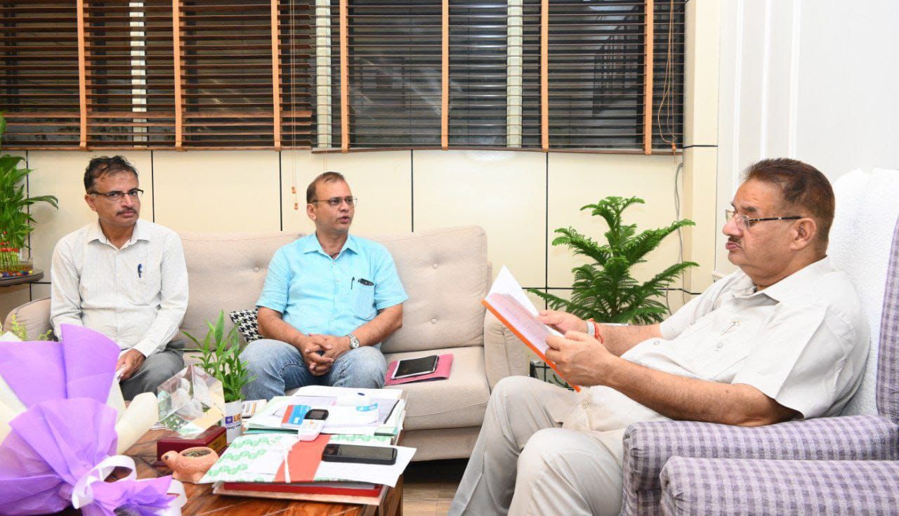 मसूरी पेयजल योजना सहित क्षेत्र की अन्य योजनाओं की समीक्षा करते कैबिनेट मंत्री गणेश जोशी।