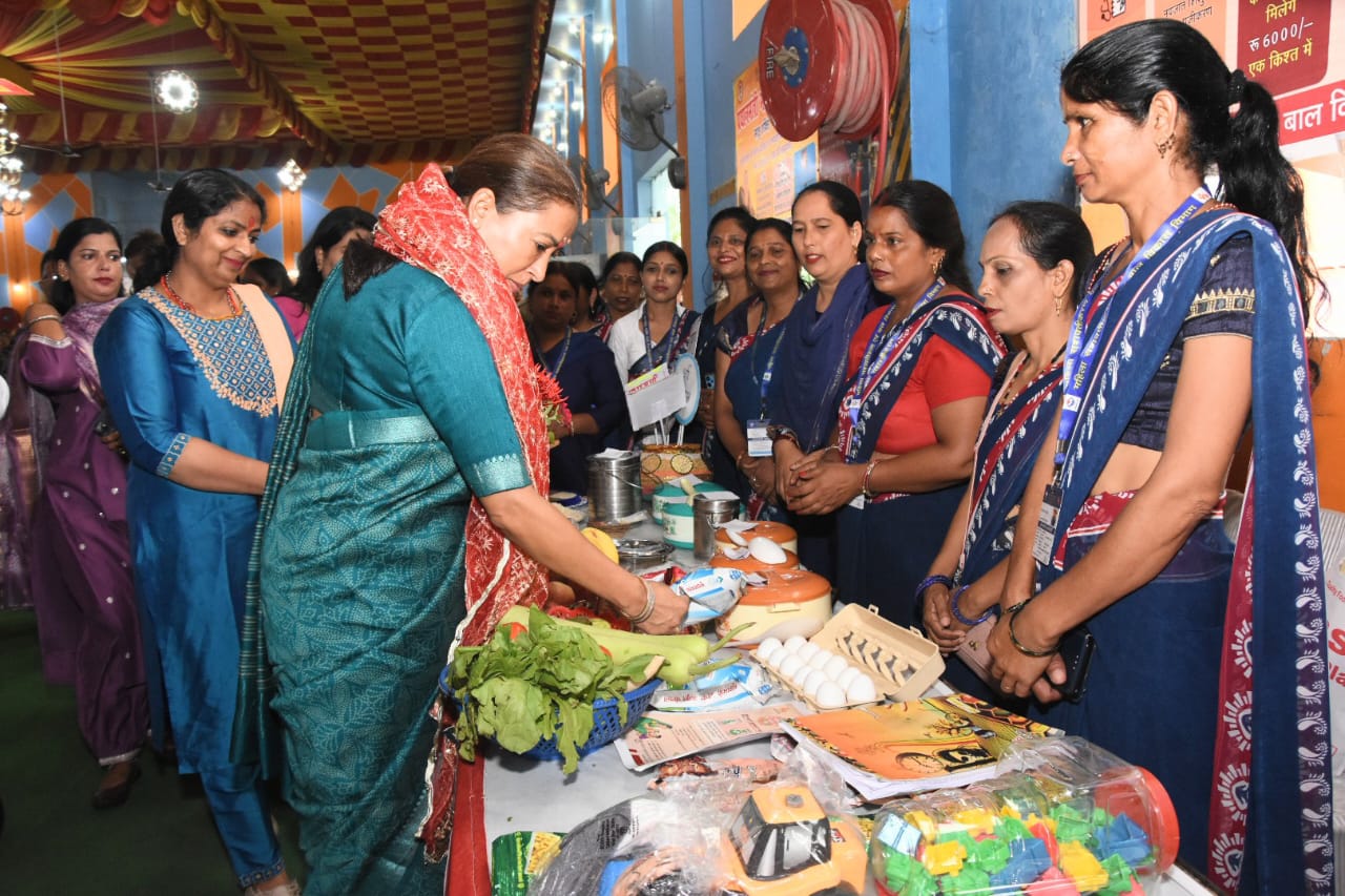 इस दौरान मंत्री रेखा नें महिला कल्याण योजनाओं की लाभार्थी बहन , बेटियों को मुख्यमंत्री महालक्ष्मी किट, पोषण किट, स्वच्छ्ता किट और वैष्णवी किट वितरित किये।