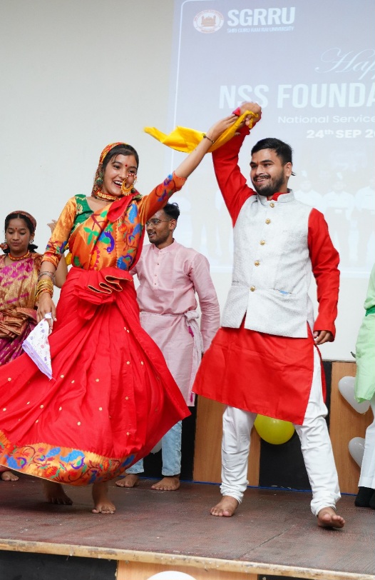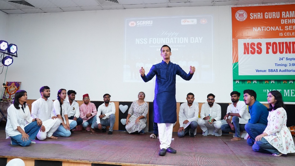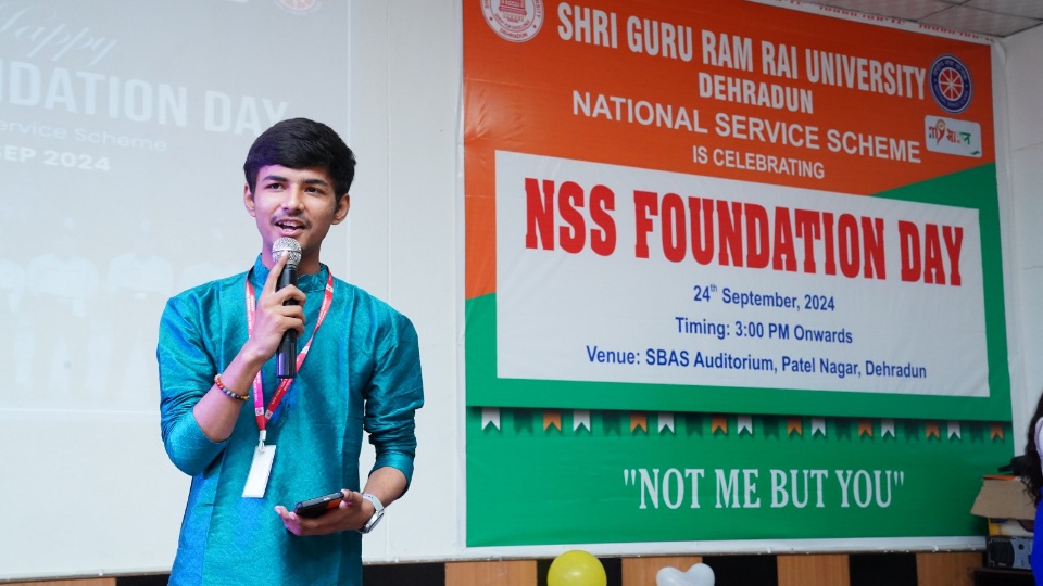 विश्वविद्यालय के सभागार मे आज एनएसएस फाउन्डेशन डे के अवसर पर रंगारंग कार्यक्रम आयोजित किया गया। कार्यक्रम का शुभारंभ मुख्य अतिथि एनएसएस समन्वयक, हेमवंती नन्दन बहुगुणा गढवाल विश्वविद्यालय, डाॅ. किरण वर्मा, एसजीआरआर विश्वविद्यालय के एनएसएस समन्वयक डाॅ. दीपक सोम व एनएसएस समन्वयक डाॅ. गीता रावत द्वारा दीप प्रज्जवलित कर किया गया। इस अवसर पर मुख्य अतिथि डाॅ. किरण वर्मा ने उच्च शिक्षा के क्षेत्र व एनएसएस में एसजीआरआर विश्वविद्यालय की उपलब्धियों की भूरी-भूरी प्रशंसा की। डाॅ. किरण वर्मा ने किसी विश्वविद्यालय में एनएसएस सैल होने के फायदे भी गिनाये। उन्होनें एसजीआरआर विश्वविद्यालय के एनएसएस सैल को सरकार की तरफ से वित्तीय सहायता दिलाने का भी वायदा किया। डाॅ. दीपक सोम ने कहा कि सन् 2018 में श्री गुरु राम राय विश्वविद्यालय में एनएसएस की स्थापना हुई, तभी से विश्वविद्यालय का एनएसएस सैल विभिन्न रचनात्मक व समाजसेवी कार्यो हेतु प्रगतिशील है। उन्होनें कहा कि एनएसएस सैल पौधा रोपण, खाना बाटने वाले वाहन व चकराता में एक गाॅव गोद लेना इत्यादि विभिन्न कार्यो द्वारा मानव सेवा में निरन्तर अपना योगदान दे रहा है।