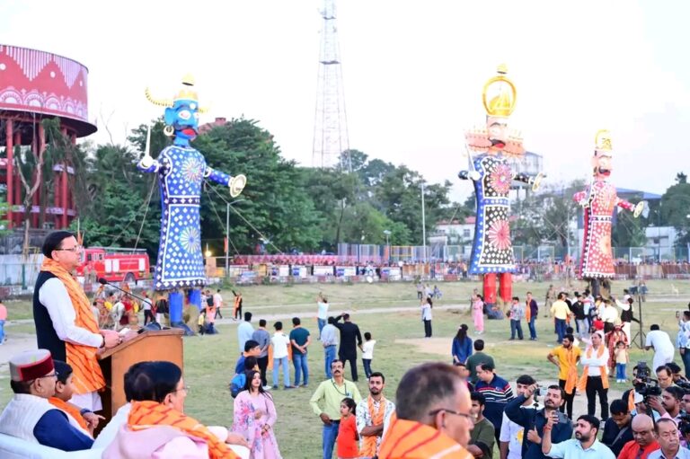 देहरादून :- शनिवार को मुख्यमंत्री पुष्कर सिंह धामी ने परेड ग्राउंड देहरादून में दशहरा महोत्सव कार्यक्रम में प्रतिभाग किया। इस अवसर पर मुख्यमंत्री ने हजारों की संख्या में मौजूद लोगों का अभिनंदन करते हुए दशहरे की शुभकामनाएं दीं।