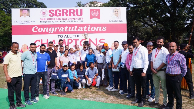 देहरादून :- श्री गुरु राम राय विश्वविद्यालय (एसजीआरआरयू) की वार्षिक खेलकूद प्रतियोगिता खेलोत्सव का शनिवार को रंगारंग प्रस्तुतियों के साथ समापन हो गया। प्रतियोगिता के समापन अवसर पर छात्र-छात्राओं ने मनमोहक प्रस्तुतियां दीं। विश्वविद्यालय की ओर से विजेताओं को मैडल, पुरस्कार व प्रशस्ति पत्र देकर सम्मानित किया गया। श्री गुरु राम राय विश्वविद्यालय के प्रेसीडेंट श्रीमहंत देवेन्द्र दास जी महाराज ने सभी विजेताओं, छात्र-छात्राओं व खेलोत्सव के आयोजकों को सफल आयोजन के लिए बधाई व शुभकामनाएं दीं।