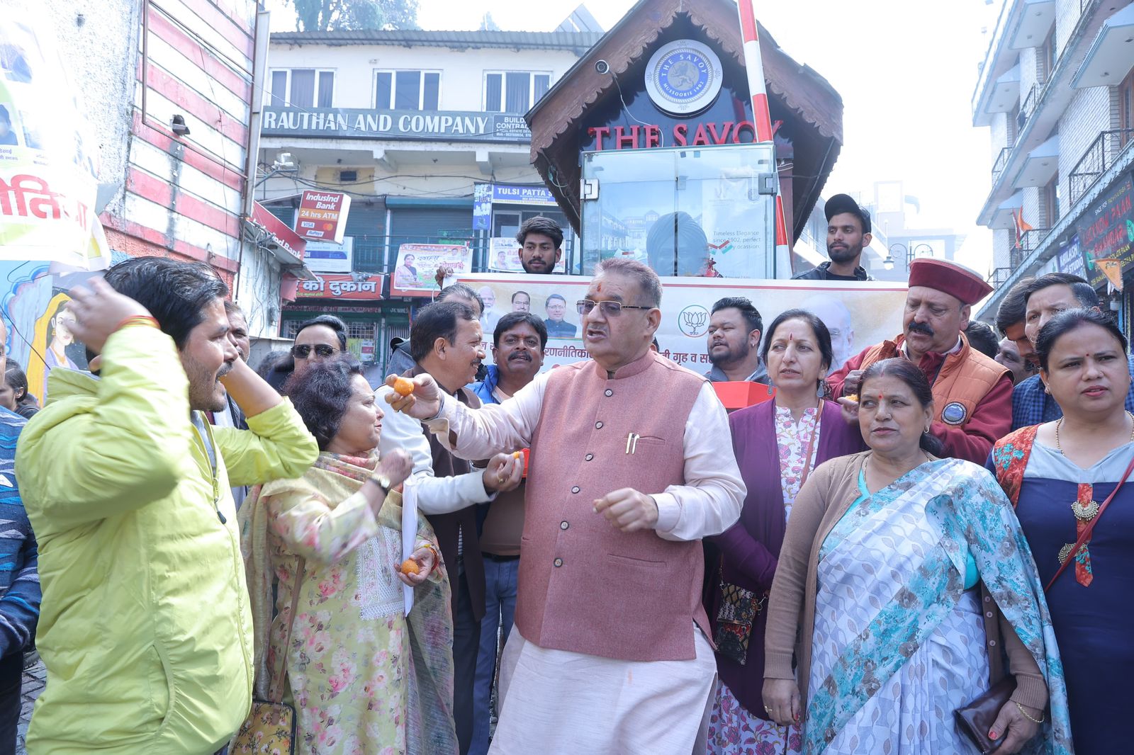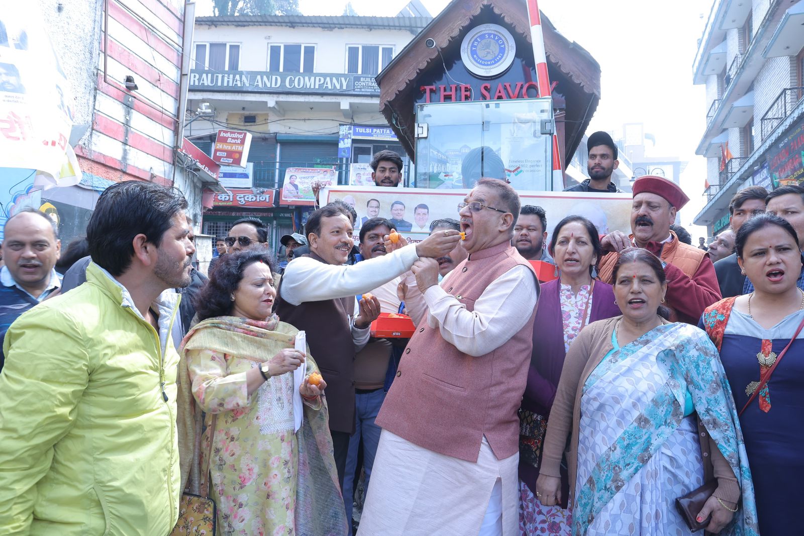 देहरादून :- केंद्रीय गृह मंत्री अमित शाह के जन्म दिवस के अवसर पर प्रदेश के कैबिनेट मंत्री गणेश जोशी ने मसूरी के उप जिला चिकित्सालय में मरीजों को फल वितरित किए। इसके उपरांत कैबिनेट मंत्री गणेश जोशी ने पार्टी कार्यकर्ताओं के साथ पिक्चर पैलेस स्थित शहीद भगत सिंह चौक पर मिष्ठान वितरण किया और पटाके फोड़कर जमकर आतिशबाजी की। कैबिनेट मंत्री ने स्थानीय लोगों और पर्यटकों को लड्डू खिलाकर केंद्रीय गृहमंत्री का जन्म दिवस धूम धाम से मनाया।
