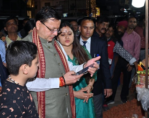 देहरादून:- मुख्यमंत्री पुष्कर सिंह धामी ने बुधवार को दीपावली के अवसर पर सपरिवार चकराता रोड़ स्थित कुमार शॉप का भ्रमण कर स्थानीय विश्वकर्मा बंधुओं से द्वारा तैयार किये गए मिट्टी के दीपक तथा मूर्तियां क्रय की तथा डिजिटल पेमेन्ट के माध्यम से भुगतान किया।