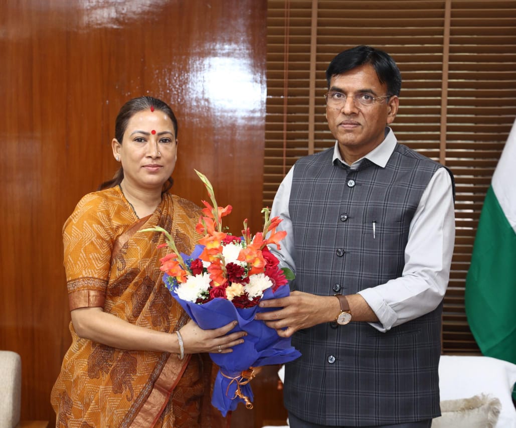 देहरादून/नई दिल्ली :- आज नई दिल्ली में उत्तराखंड की खेल मंत्री रेखा आर्या ने केंद्रीय युवा मामले और खेल मंत्री मनसुख मंडाविया से शिष्टाचार भेंट की और उन्हें अपनी शुभकामनाएं प्रेषित कीं। मंत्री रेखा आर्य ने बताया कि इस भेंट के दौरान देवभूमि उत्तराखंड में आयोजित होने वाले राष्ट्रीय खेलों का शेड्यूल तय करने हेतु माननीय मंत्री जी का आभार प्रकट किया और उन्हें प्रदेश आगमन का न्योता दिया।