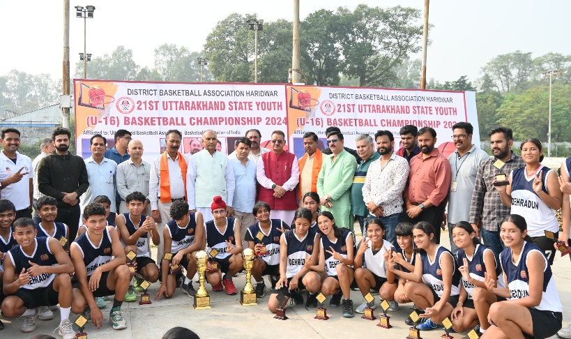 देहरादून/हरिद्वार :- कैबिनेट मंत्री गणेश जोशी ने शुक्रवार को रामलीला मैदान बी.एच.ई.एल. हरिद्वार में आयोजित 21वीं यूथ स्टेट अंडर-16 बास्केट बॉल बालक बालिका प्रतियोगिता के समापन कार्यक्रम में बतौर मुख्य अतिथि के रूप में प्रतिभाग किया। कार्यक्रम का शुभारंभ कैबिनेट मंत्री गणेश जोशी ने खिलाड़ियों से उनका परिचय प्राप्त कर किया और उनका उत्साहवर्धन किया।