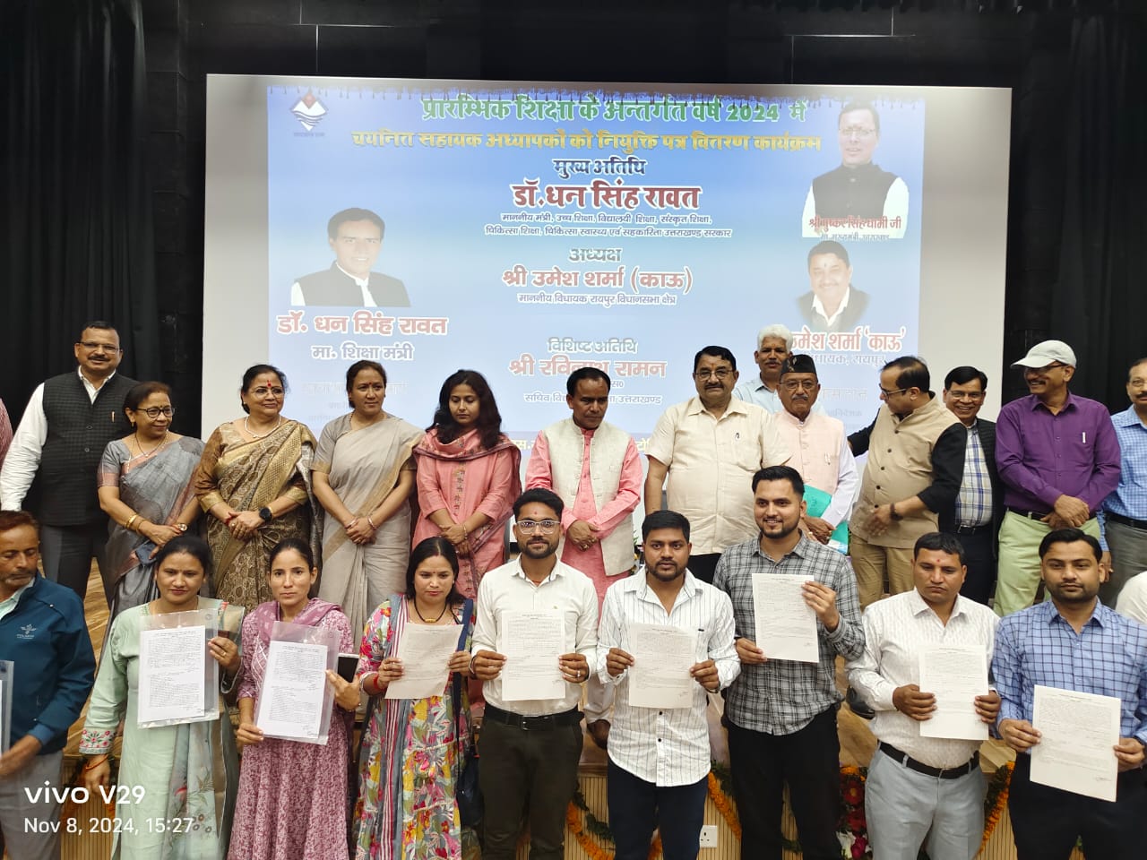 इस अवसर पर विधायक रायपुर उमेश शर्मा काऊ, महानिदेशक विद्यालयी शिक्षा झरना कमठान, निदेशक एससीईआरटी वंदना गर्ब्याल, प्रभारी निदेशक माध्यमिक शिक्षा डॉ. मुकुल सती, प्रभारी निदेशक प्रारम्भिक शिक्षा रघुनाथ लाल आर्य, अपर निदेशक सीमैट अजय कुमार नौडियाल, आशारानी पैन्यूली, आनंद भारद्वाज, पदमेंन्द्र सकलानी सहित टिहरी, पौड़ी, चमोली तथा हरिद्वार जनपद के जिला शिक्षा अधिकारी बेसिक व नियुक्ति पत्र प्राप्त करने वाले नव नियुक्त शिक्षक उपस्थित रहे।