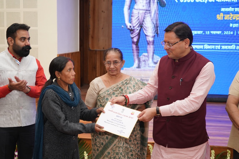 मुख्यमंत्री ने कार्यक्रम के बाद पीएम जनमन योजना के लाभार्थियों को प्रमाण पत्र प्रदान किए। उन्होंने प्रधानमंत्री आवास योजना, किसान सम्मान निधि और आयुष्मान कार्ड के लाभार्थियों को प्रमाण पत्र प्रदान किए। इस अवसर पर मुख्यमंत्री ने उधमसिंह नगर के कुल्हा और कोटद्वार के लछमपुर में पीएम जनमन योजना के तहत दो हॉस्टल बिल्डिंग का शिलान्यास भी किया।