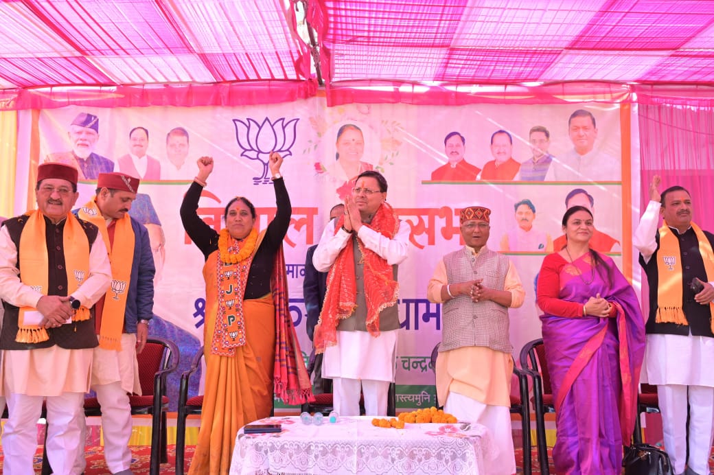 देहरादून/केदारनाथ :- मुख्यमंत्री पुष्कर सिंह धामी ने आज चोपता और तल्ला नागपुर मे चुनावी सभा की और विकास के लिए भाजपा प्रत्याशी आशा नौटियाल को रिकार्ड मतों से जिताने की अपील की। उन्होंने कहा कि भाजपा की निश्चित जीत को देखकर कांग्रेस बौखला गयी है और अनर्गल बयानबाजी कर रही है। इस दौरान दर्जनों ग्राम प्रधानों ने भाजपा की सदस्यता ली। वहीं उपनल संघ ने भी भाजपा को समर्थन देने की घोषणा की। उन्होंने कहा कि क्षेत्रीय विकास के लिए कार्तिकेय स्वामी को पर्यटन सर्किट के रूप मे विकसित करने, लोधला गाँव को वन अधिनियम से एनओसी दिलाकर सड़क पहुंचाने तथा चंद्रनगर मे आईटीआई भवन निर्माण की प्रक्रिया जल्दी शुरू की जायेगी।