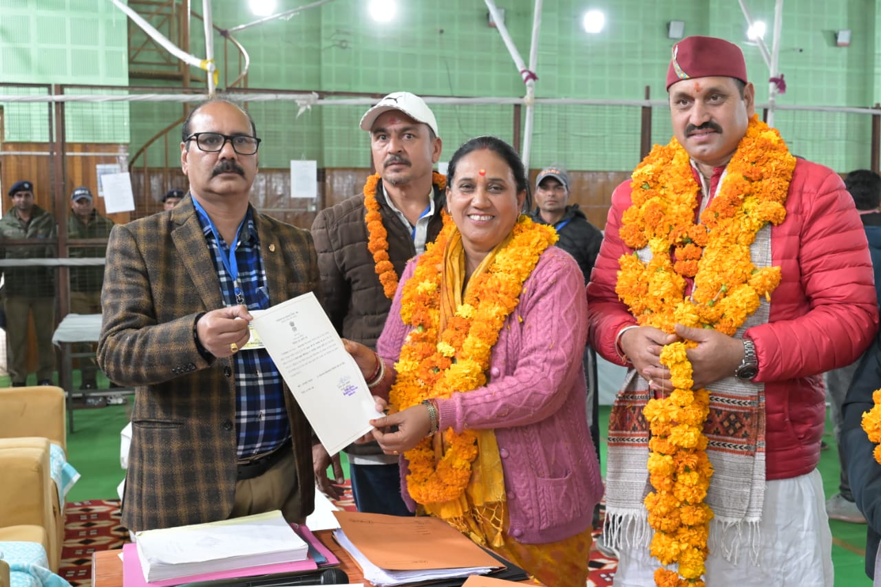 रिटर्निंग अधिकारी 07-केदारनाथ अनिल कुमार शुक्ला ने दिया भाजपा प्रत्याशी आशा नौटियाल को विजय प्रमाण-पत्र।
