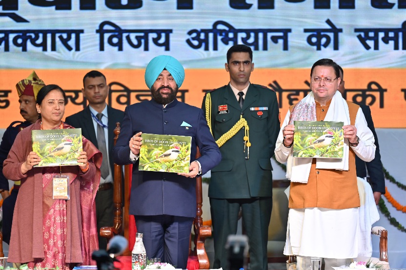 देहरादून :- राज्यपाल लेफ्टिनेंट जनरल गुरमीत सिंह (से नि) एवं मुख्यमंत्री पुष्कर सिंह धामी ने गुरुवार को दून विश्वविद्यालय, देहरादून में आयोजित ‘सिलक्यारा विजय अभियान’ प्रथम वर्षगाँठ एवं 19वाँ राज्य विज्ञान एवं प्रौद्योगिकी सम्मेलन-2024 में प्रतिभाग किया। इस अवसर पर उन्होंने सिल्क्यारा विजय अभियान पुस्तक एंव अन्य पुस्तकों का विमोचन किया। उन्होंने सिल्क्यारा रेस्क्यू अभियान पर बनी लघु फिल्म का अवलोकन भी किया।