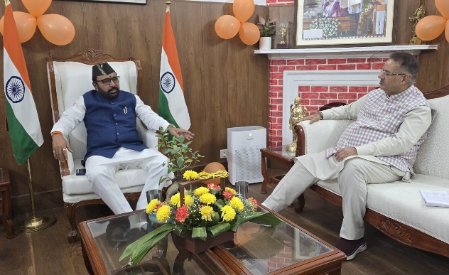 देहरादून/नई दिल्ली :- सूबे के कृषि मंत्री गणेश जोशी ने शुक्रवार को नई दिल्ली में केंद्रीय आयुष मंत्री प्रतापराव जाधव से शिष्टाचार भेंट की। मुलाकात के दौरान सूबे के कृषि मंत्री गणेश जोशी ने केंद्रीय आयुष मंत्री से उत्तराखंड में अधिक मात्रा में उत्पादित होने वाले तेजपत्ता और तैमूर को फसल घोषित करने का अनुरोध किया। उन्होंने कहा कि केंद्र सरकार के सहयोग से चंदन को भी फसल घोषित किया जाए ताकि यह राज्य के किसानों के लिए केंद्र की ओर से एक विशेष सहयोग हो सके। कृषि मंत्री ने बताया कि इन उत्पादों को फसल घोषित होने के बाद कृषि एवं उद्यान के माध्यम से प्रदेश के किसानों को अत्यधिक लाभ होगा।