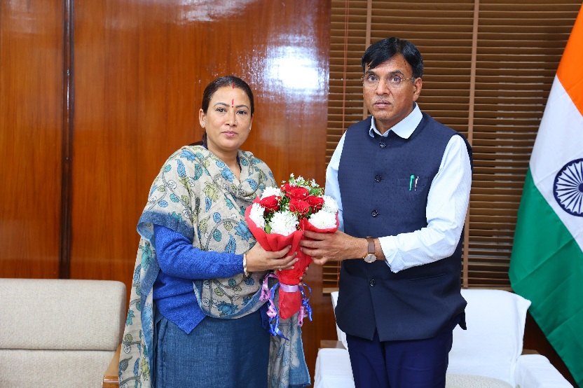 देहरादून :- प्रदेश की खेल मंत्री रेखा आर्या ने दिल्ली में केंद्रीय युवा मामले एवं खेल मंत्री डॉ. मनसुख मंडाविया से भेंट की। इस मुलाकात के दौरान रेखा आर्या ने सबसे पहले केंद्रीय मंत्री का राज्य को सौंपी गई 38वें राष्ट्रीय खेलों की मेजबानी के लिए आभार प्रकट किया और इन खेलों के सफल आयोजन के लिए उनसे मिल रहे मार्गदर्शन के लिए उनको धन्यवाद दिया। इसके बाद दोनों नेताओं के बीच राष्ट्रीय खेलों के आयोजन से जुड़े विभिन्न विषयों पर चर्चा हुई। रेखा आर्या ने केंद्रीय मंत्री को खेलों की तैयारी के बारे में बताया और कहा की प्रदेश इस ऐतिहासिक आयोजन को लेकर पूरी तरह से उत्सुक है।