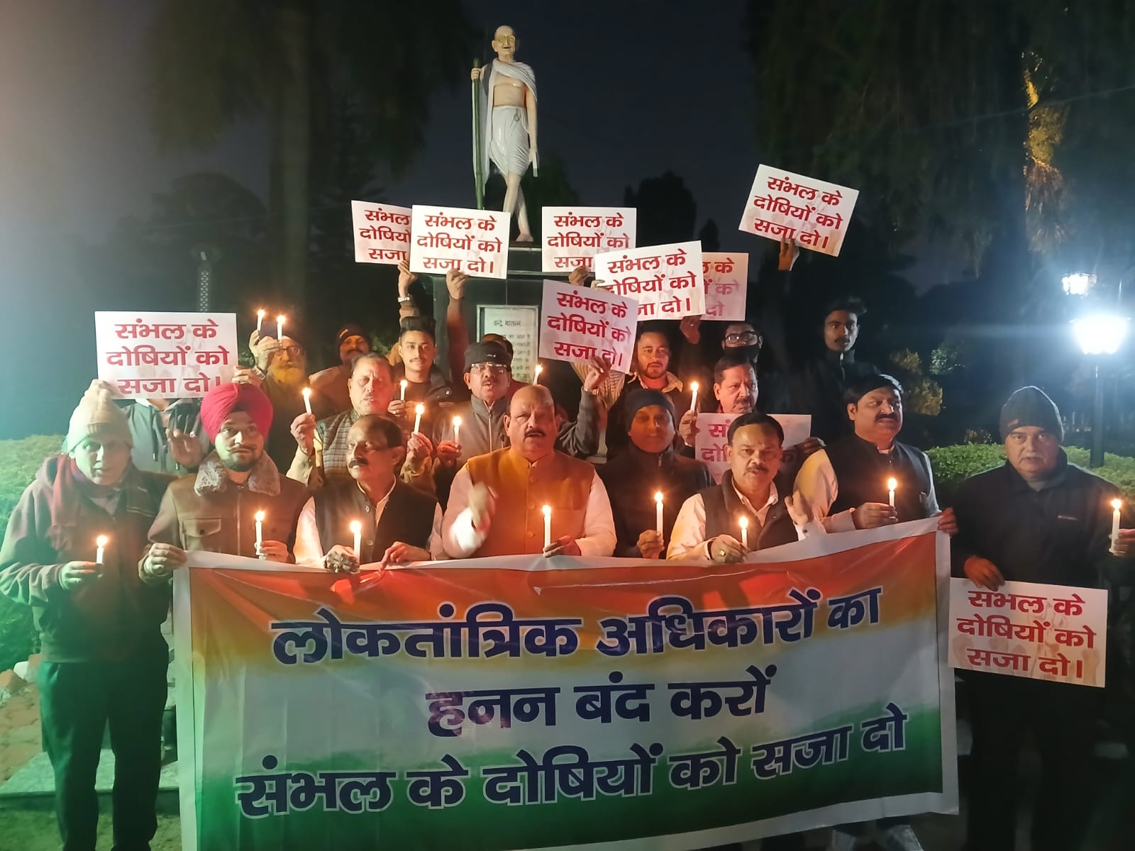 देहरादून :- लोकसभा में नेता प्रतिपक्ष राहुल गांधी एवं सांसद श्रीमती प्रियंका गांधी को हिंसाग्रस्त क्षेत्र संभल जाने से रोके जाने के विरोध में आज देहरादून में प्रदेश कार्यालय से पूर्व महानगर अध्यक्ष लालचन्द शर्मा के नेतृत्व में कैंडल मार्च कार्यक्रम का आयोजन किया गया।
