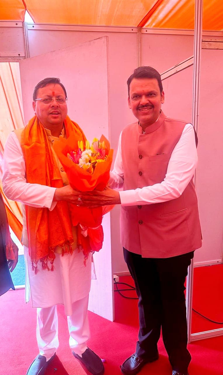 देहरादून/मुंबई महाराष्ट्र :- गुरुवार को मुंबई में महाराष्ट्र सरकार के शपथ ग्रहण समारोह में मुख्यमंत्री पुष्कर सिंह धामी ने प्रतिभाग किया। वही देवेंद्र फडणवीस को महाराष्ट्र के मुख्यमंत्री के रूप में शपथ ग्रहण करने पर उत्तराखण्डः मुख्यमंत्री पुष्कर सिंह धामी ने शुभकामनाएं दीं हैं। इस मौके पर मुख्यमंत्री ने कहा प्रधानमंत्री नरेन्द्र मोदी के मार्गदर्शन और मुख्यमंत्री देवेंद्र फडणवीस के नेतृत्व महाराष्ट्र विकास और समृद्धि की नई ऊंचाइयों को छूएगा।