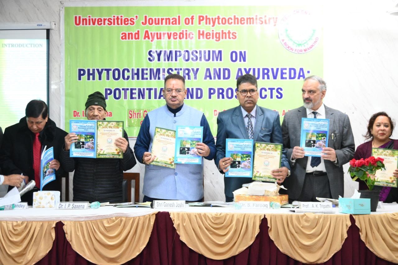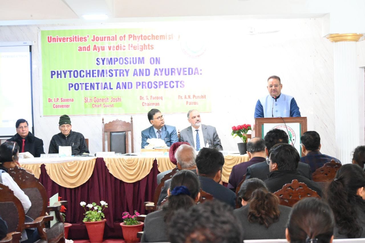 देहरादून :- कैबिनेट मंत्री गणेश जोशी ने आज इंदर रोड़ में फाइटोकेमिस्ट्री और आयुर्वेद क्षमता एवं संभावनाओं पर संगोष्ठी कार्यक्रम में बतौर मुख्य अतिथि प्रतिभाग किया। इस अवसर पर कैबिनेट मंत्री गणेश जोशी ने संस्थान द्वारा विभिन्न आयुर्वेदिक औषधियों पर किए गए शोधों का अवलोकन और संस्थान की स्मारिका का अनावरण भी किया।
