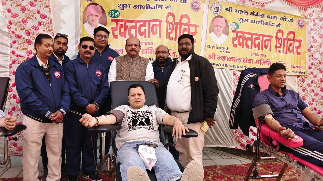 इससे पूर्व भागवत आचार्य सुभाष जोशी जी , आचार्य सुशांत राज जी द्वारा दीप प्रज्वलित कर शिविर का शुभारंभ किया गया। शिविर में निवर्तमान मेयर सुनील उनियाल गामा, पूर्व राज्यमंत्री अशोक वर्मा, पूर्व महानगर अध्यक्ष लालचंद शर्मा, ब्रांड एंबेसडर स्वच्छता अभियान देहरादून मोंटी कोहली ने अपनी उपस्थिति दर्ज कराई। शिविर को सफल बनाने में श्री महाकाल सेवा समिति के बालकिशन शर्मा, संजीव गुप्ता, गौरव जैन, आयुष जैन, नितिन अग्रवाल, सुमित बंसल, विनय प्रजापति, अंशुल बंसल, हेमराज अरोड़ा, राहुल माटा, विक्रम चैधरी, कृतिका राणा अनुष्का राणा का विशेष सहयोग रहा।
