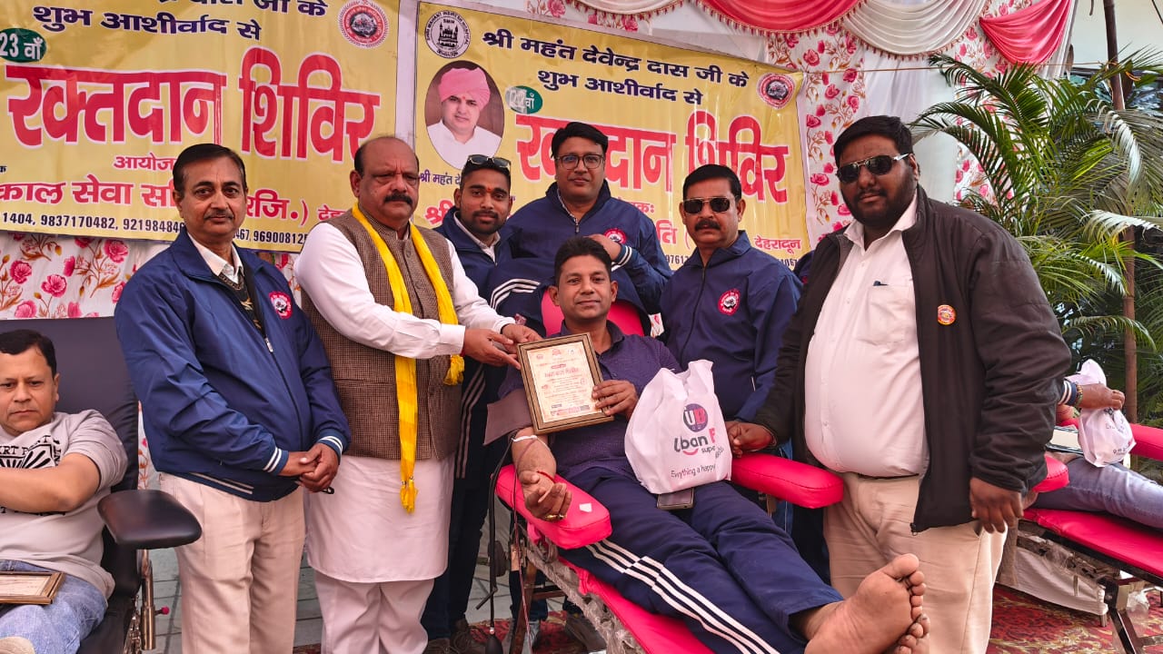 देहरादून :- रविवार को परम श्रद्धेय श्री महंत देवेंद्र दास जी के सानिध्य में श्री महाकाल सेवा समिति द्वारा आयोजित 23 वां रक्तदान शिविर श्री महेंद्र इंद्रेश अस्पताल ब्लड बैंक के सहयोग से 54 युनिट रक्त एकत्रित हुआ।