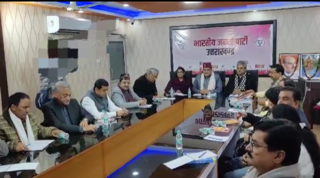 पार्टी मुख्यालय में हुई बैठक की जानकारी देते हुए प्रदेश मीडिया प्रभारी मनवीर सिंह चौहान ने बताया कि बैठक में मुख्यमंत्री पुष्कर सिंह धामी वर्चुअली शामिल हुए। बैठक में पार्टी प्रदेश प्रभारी दुष्यंत कुमार गौतम, सह प्रभारी श्रीमती रेखा वर्मा, प्रदेश अध्यक्ष महेंद्र भट्ट, पूर्व मुख्यमंत्री डॉ रमेश पोखरियाल निशंक, त्रिवेंद्र सिंह रावत, विजय बहुगुणा, तीरथ सिंह रावत, गढ़वाल सांसद अनिल बलूनी, नैनीताल सांसद अजय भट्ट, पूर्व प्रदेश अध्यक्ष मदन कौशिक, प्रदेश महामंत्री संगठन अजेय कुमार, प्रदेश महामंत्री आदित्य कोठारी, खिलेंद्र चौधरी, कैबिनेट मंत्री धन सिंह रावत, प्रदेश उपाध्यक्ष कुलदीप कुमार महिला मोर्चा अध्यक्ष श्रीमती आशा नौटियाल उपस्थित रहे।