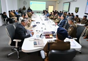 देहरादून :- पुलिस महानिदेशक दीपम सेठ की अध्यक्षता में 38वें राष्ट्रीय खेलों के आयोजन की तैयारियों के दृष्टिगत गढ़वाल व कुमाऊँ परिक्षेत्र सहित समस्त जनपद प्रभारियों, सेनानायकों एवं सम्बन्धित ईवेन्ट मैनेजमेन्ट एजेन्सियों के साथ त्रुटिरहित सुरक्षा व्यवस्था, फोर्स व्यस्थापन प्लान, यातायात प्लान, पार्किंग, सुरक्षा व्यवस्था हेतु आवश्यक उपकरण के सम्बन्ध में वीडियो कान्फ्रेसिंग के माध्यम से एक उच्च स्तरीय समीक्षा गोष्ठी आयोजित की गयी।