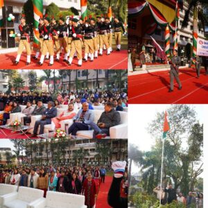 देहरादून :- श्री गुरु राम राय विश्वविद्यालय (एसजीआरआरयू) सहित एसजीआरआर गुप के संस्थानों में गणतन्त्र दिवस समारोह धूमधाम के साथ मनाया गया। श्री दरबार साहिब श्री गुरु राम राय विश्वविद्यालय सहित एसजीआरआर के विभिन्न संस्थानों में गणतन्त्र दिवस पर मनमोहक कार्यक्रम आयोजित किए गए। श्री गुरु राम राय विश्वविद्यालय के एनएसएस, एनसीसी कैडेट्स, एनसीसी छात्र.छात्राओं सहित विश्वविद्यालय के 11 संघटक स्कूलों के छात्र.छात्राओं ने अनुशासित परेड से सबका मन मोह लिया।