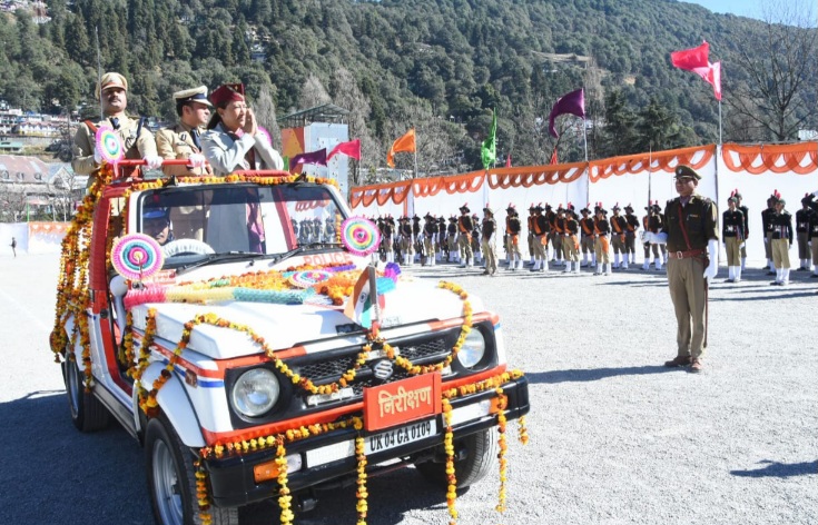 नैनीताल के डीएसए मैदान में पुलिस और पीएसी के जवानों ने कैबिनेट मंत्री रेखा आर्या को सलामी दी। कैबिनेट मंत्री रेखा आर्या ने विशेष वाहन पर सवार होकर परेड का निरीक्षण किया। इस अवसर पर उन्होंने कहा कि संविधान रचयिता बाबा भीमराव अंबेडकर ने कहा था कि किसी समाज की प्रगति उस समाज की महिलाओं की प्रगति के पैमाने पर मापी जाती है। केंद्र और राज्य सरकार ने इसी विचार को चरितार्थ करते हुए प्रदेश की महिलाओं को सशक्त बनाने के लिए तमाम योजनाएं शुरू की है।
