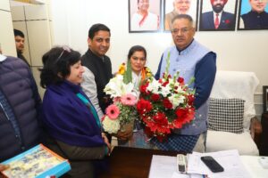 देहरादून :- सोमवार को कैबिनेट मंत्री गणेश जोशी से हाथीबड़कला स्थित शासकीय आवास पर नगर निकाय चुनाव में मसूरी विधानसभा क्षेत्र से विजयी हुए सभी पार्षदों ने मुलाकात कर कैबिनेट मंत्री गणेश जोशी का आभार व्यक्त किया। कैबिनेट मंत्री गणेश जोशी ने निकाय चुनाव में विजयी हुए सभी पार्षदों को बधाई एवं शुभकामनाएं दी। उन्होंने कहा कि यह जीत जनता के विश्वास और आपके कठिन परिश्रम का प्रतीक है।