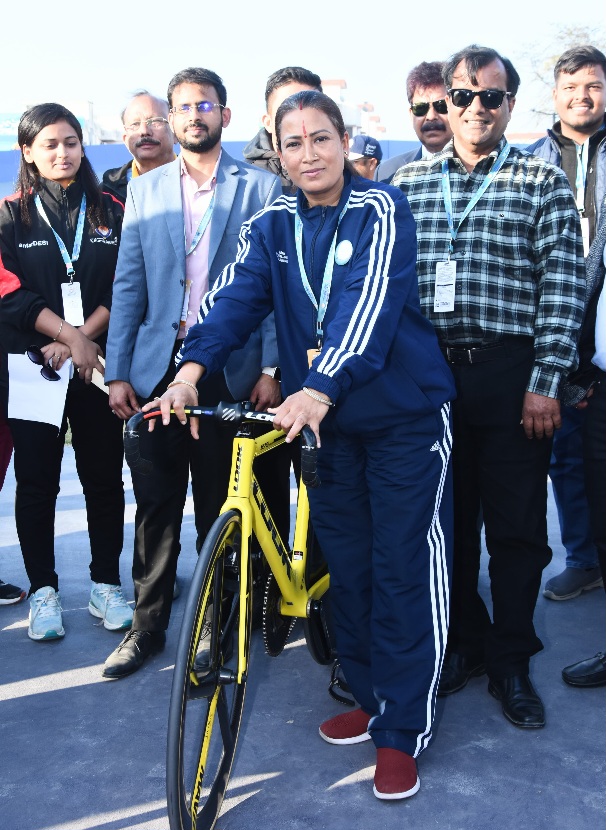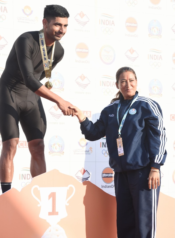 देहरादून/रुद्रपुर :- सोमवार को प्रदेश की खेल मंत्री रेखा आर्या 38 वे राष्ट्रीय खेलों की साइकिलिंग प्रतियोगिता का फाइनल देखने के लिए रुद्रपुर पहुंची। इसके बाद खेल मंत्री ने विजेताओं को उनके पदक पहनाकर सम्मानित किया।