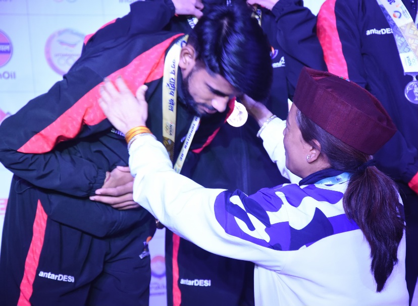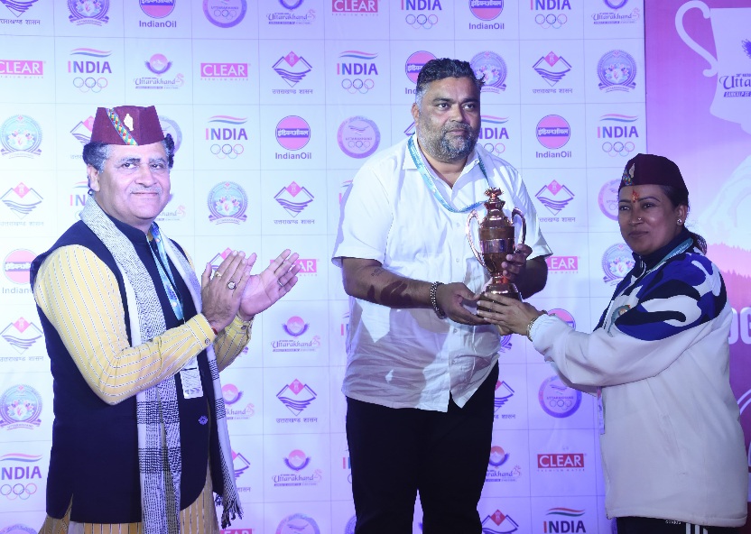देहरादून/अल्मोड़ा :- 38वे राष्ट्रीय खेलों की योगासन प्रतियोगिता का अल्मोड़ा के हेमवती नंदन बहुगुणा स्पोर्ट्स स्टेडियम में मंगलवार को रंगारंग समापन हुआ। इस मौके पर खेल मंत्री रेखा आर्या ने विजेताओं को पदक पहनाए।