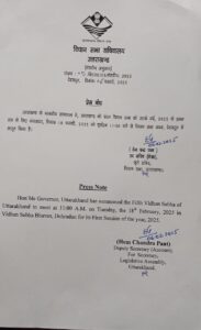 देहरादून। उत्तराखंड विधानसभा का बजट सत्र 18 फरवरी से शुरू होगा। इसके लिए अधिसूचना जारी कर दी गई है।