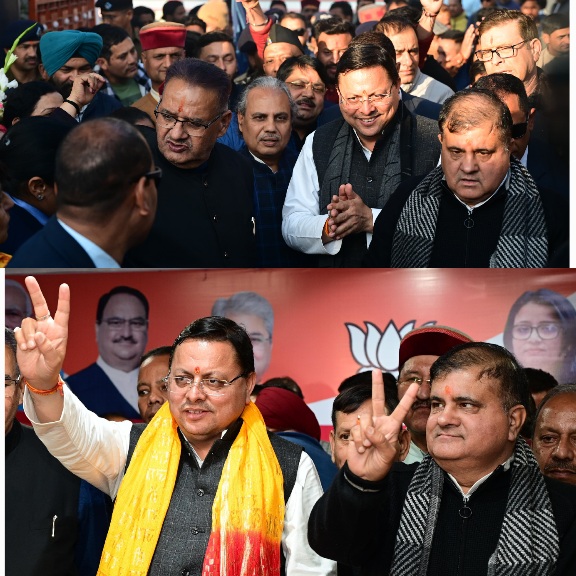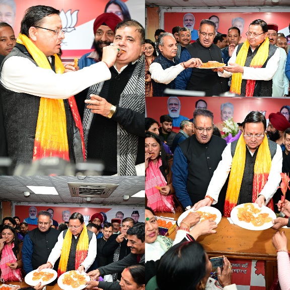 देहरादून :- दिल्ली चुनावों में मिली बंपर जीत पर भाजपा कार्यकर्ताओं ने सीएम धामी और प्रदेश अध्यक्ष भट्ट के साथ पार्टी मुख्यालय मे जमकर जश्न मनाया। इस अवसर पर सीएम पुष्कर धामी ने इन नतीजों को पीएम मोदी की गारंटी की जीत बताया है। साथ ही कहा कि वहां डबल इंजन की सरकार में डबल गति से विकास होगा। भाजपा सरकार अपने संकल्प पत्र में किए सभी वादों को पूरा करेगी।