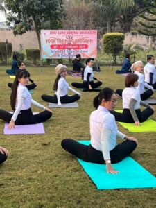 देहरादून :- श्री गुरु राम राय विश्वविद्यालय (एसजीआरआरयू) के स्कूल ऑफ यौगिक साइंसेज एण्ड नैचरोपैथी में दो दिवसीय योग प्रशिक्षण शिविर का आयोजन किया गया। एसजीआरआरयू में वियतनाम के 15 सदस्यीय दल ने योग प्रशिक्षण लिया। उन्होंने योग आसान प्राणायम के महत्व को आत्मसात किया। प्रशिक्षण के दौरान उन्होंने भारतीय संस्कृति एवम् दर्शन का ममत्व को जाना। वह भारतीय परंपराओं एवम् योग साधनओं के गूढ़ रहस्यों को जानकर गदगद हो गए।