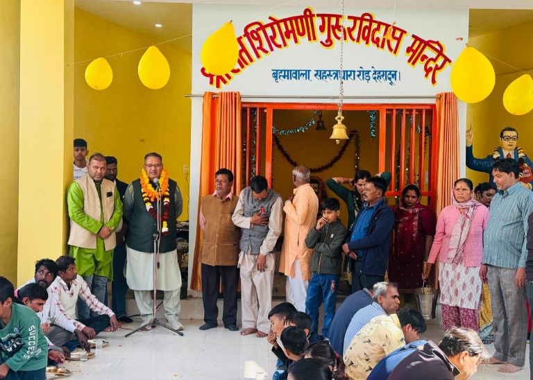 देहरादून :- कैबिनेट मंत्री गणेश जोशी ने आज संत रविदास जयंती के अवसर पर संत शिरोमणी गुरु रविदास मन्दिर ब्रह्मावाला में आयोजित भंडारे कार्यक्रम में प्रतिभाग किया। इस अवसर पर कैबिनेट मंत्री गणेश जोशी ने संत रविदास की मूर्ति पर माल्यार्पण कर उन्हें श्रद्धासुमन अर्पित किया। कैबिनेट मंत्री गणेश जोशी ने प्रदेशवासियों को शुभकामनाएं दीं और समाज में समरसता व समानता के संदेश को आगे बढ़ाने का आह्वान किया।