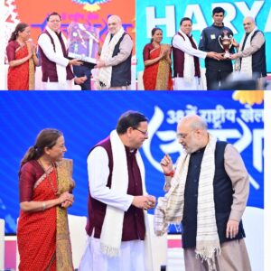 केंद्रीय गृह मंत्री अमित शाह ने उत्तराखण्ड के चारों धामों के देवी देवताओं को प्रणाम करते हुए कहा कि मुख्यमंत्री धामी ने उत्तराखंड के हर जिले में खेल इंफ्रास्ट्रक्चर तैयार हो गया है। उन्होंने कहा मुख्यमंत्री ने देवभूमि को राष्ट्रीय खेलों के नक्शे पर 25वें स्थान से 7वें स्थान पर लाने का कार्य किया है। राष्ट्रीय खेलों में उत्तराखंड के विजेता खिलाड़ियों ने देवभूमि को खेल भूमि बनाया है। केंद्रीय गृह मंत्री ने सभी उत्तराखंड के विजेता खिलाड़ियों को शुभकामनाएं देकर उनके उज्ज्वल भविष्य की कामना की।