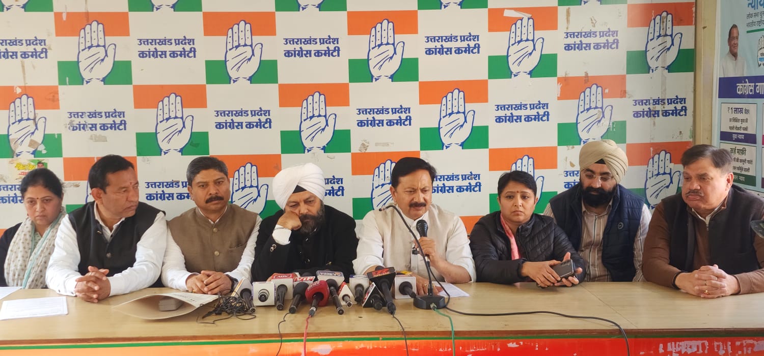 देहरादून :- उत्तराखण्ड प्रदेश कांग्रेस कार्यालय में आयोजित पत्रकार वार्ता को संबोधित करते हुए प्रदेश कांग्रेस अध्यक्ष करन माहरा ने उत्तराखण्ड सरकार द्वारा लागू यूनिफॉर्म सिविल कोड (यू.सी.सी.) में लिव-इन-रिलेशन के लिए किये गये प्रावधानों पर सवाल उठाते हुए इसे उत्तराखण्ड राज्य की गरिमा तथा संस्कृति के खिलाफ बताया।