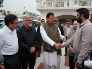देहरादून/खटीमा :- मुख्यमंत्री पुष्कर सिंह धामी से बुधवार को खटीमा में न्यूजीलैंड से आए डेलिगेशन ने की शिष्टाचार भेंट की। ग़ौरतलब है कि प्राइमरी इंडस्ट्री मिनिस्ट्री, न्यूजीलैंड सरकार के सलाहकार प्रोफेसर गैरी तथा न्यूजीलैंड के पशुचिकित्सा वैज्ञानिक प्रोफेसर निकोलस द्वारा जनपद उधम सिंह नगर के तहसील किच्छा, गदरपुर, काशीपुर के अंतर्गत भारत सरकार की ब्रीड मल्टीप्लीकेशन फार्म योजना के लाभार्थियों के फार्मो का निरीक्षण व अध्ययन किया जा रहा है।