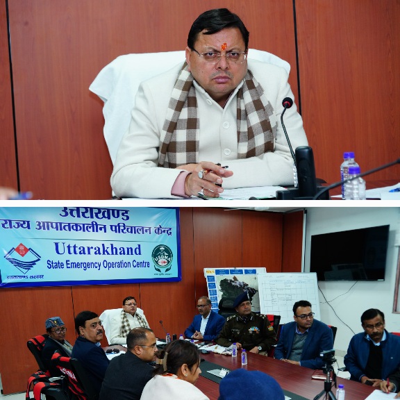 देहरादून :- मुख्यमंत्री पुष्कर सिंह धामी ने राज्य आपातकालीन परिचालन केंद्र, आई.टी पार्क देहरादून पहुंचकर जनपद चमोली के माणा गांव के पास हुए हिमस्खलन के संबंध में अधिकारियों के साथ बैठक कर हिमस्खलन के बाद रेस्क्यू अभियान में तेजी लाने के निर्देश दिए। मुख्यमंत्री ने हिमस्खलन की स्थिति के बारे में भी पूरी जानकारी ली।
