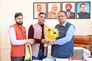 देहरादून :- सैनिक कल्याण मंत्री गणेश जोशी से आज उनके कैंप कार्यालय में उपनल कर्मचारी संयुक्त मोर्चा उत्तराखंड के संयोजक विनोद गोदियाल के नेतृत्व में एक प्रतिनिधिमंडल ने भेंट की। प्रतिनिधिमंडल ने उपनल कर्मचारियों की आकस्मिक मृत्यु पर दी जाने वाली तात्कालिक सहायता राशि को एक लाख से बढ़ाकर 1.50 लाख रुपये करने के निर्णय पर सैनिक मंत्री गणेश जोशी का आभार व्यक्त किया।