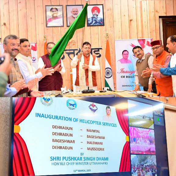 देहरादून :- मुख्यमंत्री पुष्कर सिंह धामी ने मंगलवार को चार हेली सेवाओं का हरी झंडी दिखाकर शुभारंभ किया है। इन सेवाओं के जरिए जरिए देहरादून से नैनीताल, बागेश्वर और मसूरी और हल्द्वानी से बागेश्वर का हवाई सम्पर्क स्थापित हो गया है।