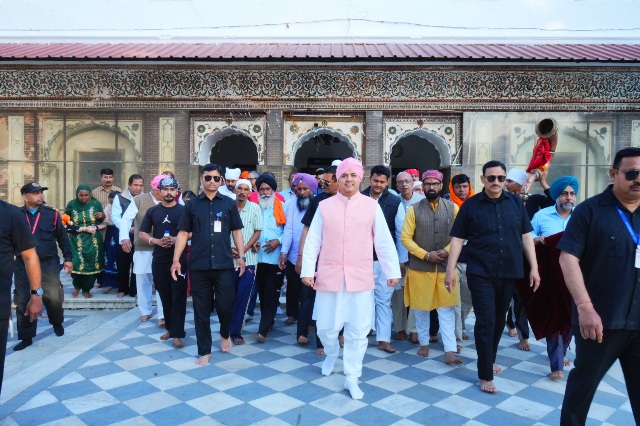 देहरादून :- पंजाब के विभिन्न हिस्सों से 150 सदस्यीय पैदल संगत का जत्था बुधवार शाम को श्री दरबार साहिब पहुंचा। शाम 5ः30 बजे श्री दरबार साहिब देहरादून के दर्शनी गेट पहुंचते ही पैदल संगत का पुष्प वर्षा व ढोल नगाड़ों की थाप के साथ दूनवासियों व दरबार श्री गुरु राम राय जी महाराज, प्रबन्ध समिति एवम् श्री झंडा जी मेला आयोजन समिति ने जोरदार स्वागत किया। दर्शनी गेट व श्री दरबार साहिब परिसर में श्री दरबार साहिब के सज्जादानशीन श्रीमहंत देवेन्द्र दास जी महाराज की अगुवाई में पुष्प वर्षा के बीच संगत का जोरदार स्वागत हुआ। श्री महाराज जी ने संगत को दर्शन दिए व आशीर्वाद दिया। श्री दरबार साहिब परिसर व निकटवर्ती समूचा क्षेत्र श्री गुरु राम राय जी महाराज के गगनभेदी जयकारों से गूंज उठा।
