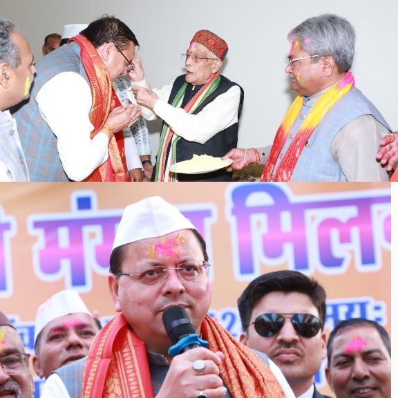 देहरादून :- मुख्यमंत्री पुष्कर सिंह धामी बुधवार को नई दिल्ली में केंद्रीय सड़क परिवहन एवं राजमार्ग राज्य मंत्री अजय टम्टा के सरकारी आवास पर आयोजित पारंपरिक होली मिलन समारोह में सम्मिलित हुए। इस अवसर पर उन्होंने सभी को होली की शुभकामनाएं देते हुए कहा कि होली पर्व प्रेम, सौहार्द तथा आपसी एकता का प्रतीक है। होली का पर्व हमारे समाज में सांस्कृतिक एकता और समरसता को भी सुदृढ़ करता है।