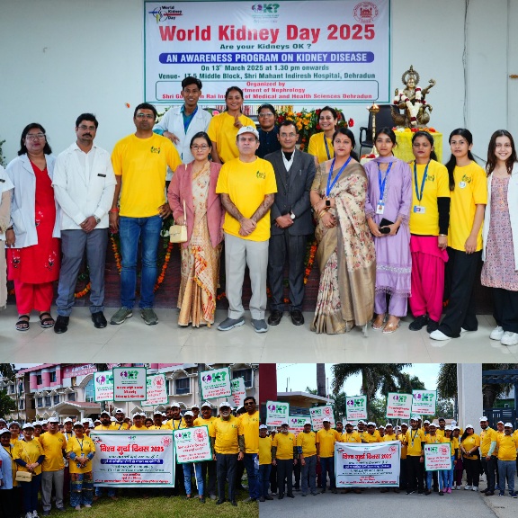 देहरादून :- श्री गुरु राम राय इंस्टीट्यूट ऑफ मेडिकल एण्ड हैल्थ साइंसेज़ के किडनी रोग विभाग की ओर से जनजागरूता कार्यक्रम आयोजित किया गया। विश्व किडनी दिवस के अवसर पर जागरूकता रैली एवम् एक सेलीब्रेशन कार्यक्रम का आयोजन किया गया। श्री महंत इन्दिरेश अस्पताल के डाॅक्टरों एवम् स्टाफ ने किडनी जागरुकता रैली में बढ़चढ़ कर भाग लिया। हर वर्ष मार्च माह के द्वितीय गुरुवार को दुनिया भर में विश्व किडनी दिवस मनाया जाता है। इस अवसर पर रैली में शामिल सभी लोगाें ने जनजागरूकता के माध्यम से किडनी बचाने का संकल्प लिया। किडनी रोगों से बचाव एवम् रोकथाम विषय पर आयोजित पोस्टर प्रतियोगिता के विजेताओं को पुरस्कार देकर सम्मानित किया गया।
