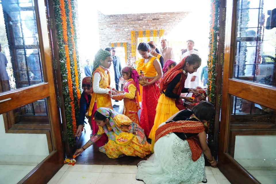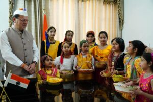 देहरादून :- उत्तराखंड के लोक पर्व फूलदेई को बड़े ही धूमधाम के साथ मनाया गया, शासकीय आवास पर राज्य के मुख्यमंत्री पुष्कर सिंह धामी ने बच्चों के साथ लोक पर्व फूलदेई का त्यौहार मनाया। इस अवसर पर स्थानीय वेशभूषा में सजे सवरे बच्चों ने पारंपरिक गीतों के साथ फूलदेई का त्यौहार मनाया. मुख्यमंत्री पुष्कर सिंह ने कहा कि स्थानीय वेशभूषा में सजे-संवरे बच्चों ने पारंपरिक गीतों के साथ वातावरण को उल्लासपूर्ण बना दिया।