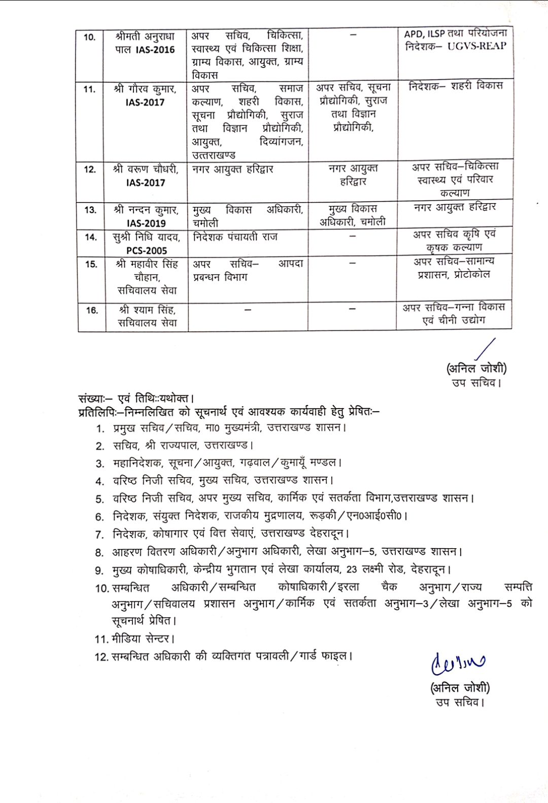 देहरादून :- उत्तराखंड शासन ने बड़े स्तर पर IAS ,IPS,व pcs अधिकारियों के दायित्व में किया बदलाव-शासनादेश जारी। 13 IAS और 10 पुलिस अधिकारियों समेत कुल 26 अधिकारियों का दायित्व बदला गया।