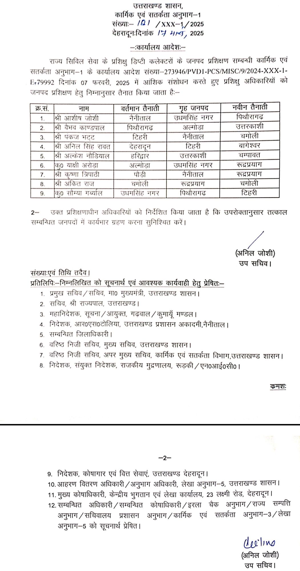 सचिवालय सेवा के महावीर सिंह चौहान को अपर सचिव सामान्य प्रशासन और इसी संवर्ग के श्याम सिंह को अपर सचिव गन्ना विकास एवं चीनी उद्योग की जिम्मेदारी दी गई।